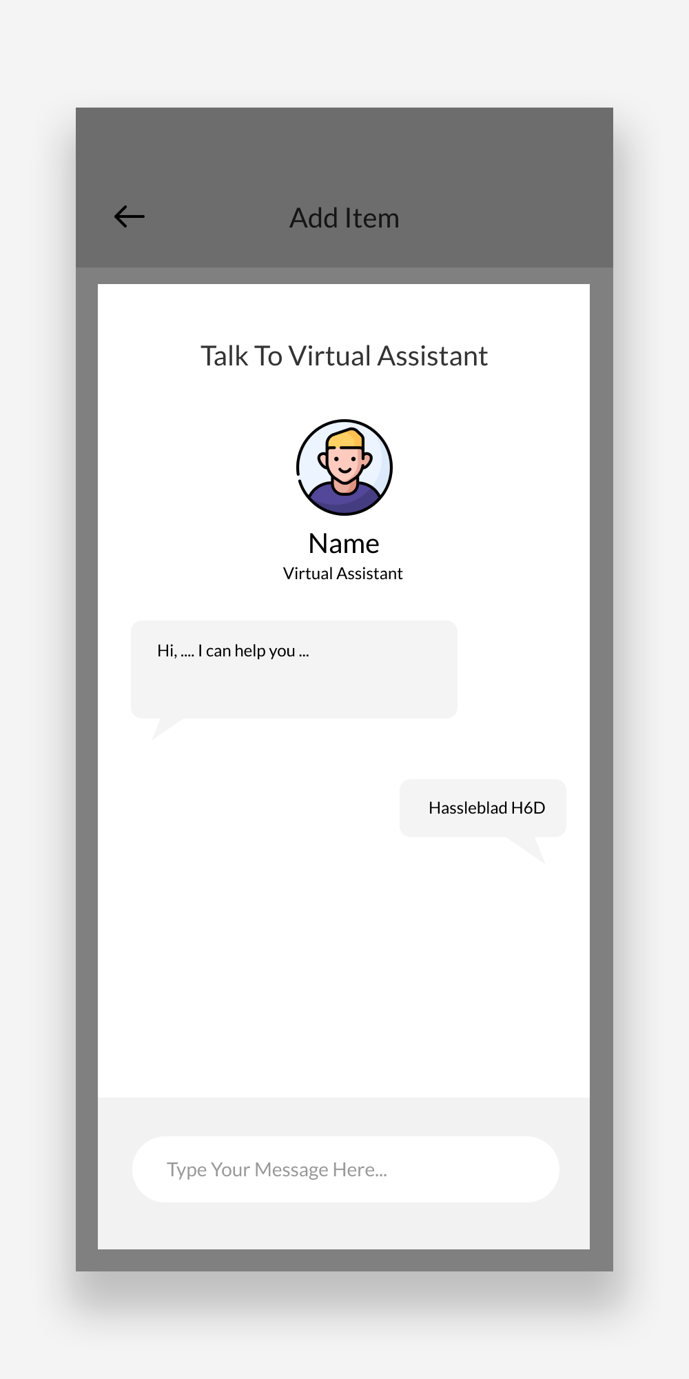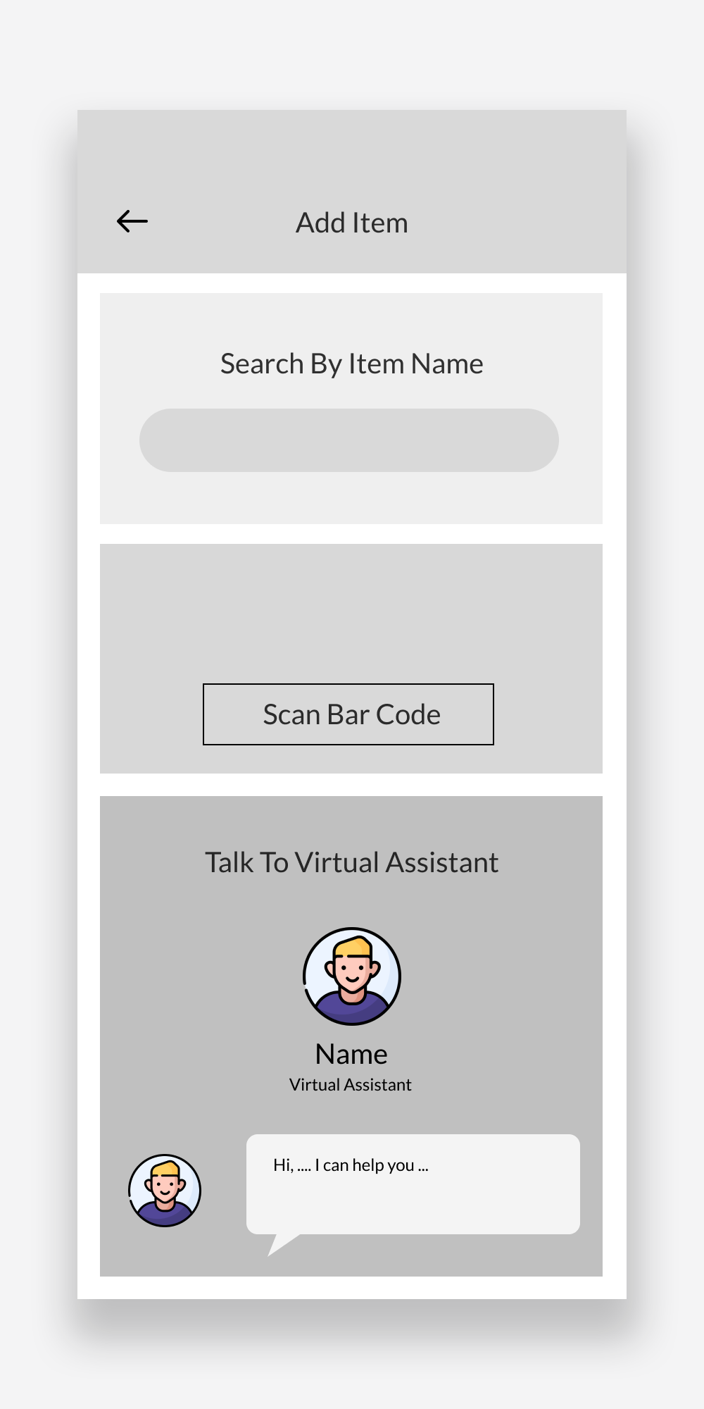 Adding an item using the virtual assistant option