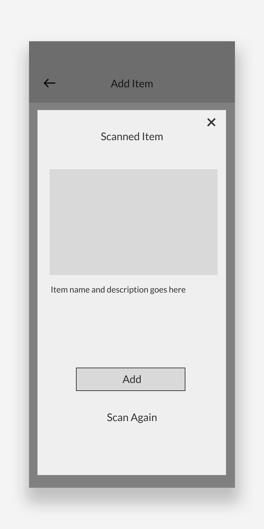 Scanned item confirmation screen